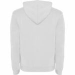 Sudadera con capucha forrada. Puños y cinturilla en canalé 2×1 con elastano. Cubrecosturas del mismo tejido. Cordón plano en capucha. Opciones de colores con capucha a contraste y ojales metálicos al tono.