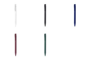 Bolígrafo pulsador con cuerpo de aluminio reciclado certificado GRS y acabado en goma para marcaje láser. Diseño elegante con clip y pulsador cromados, distintivo de aluminio reciclado y cartucho jumbo de tinta azul. ♻ Sostenible y reciclable sin perder calidad.