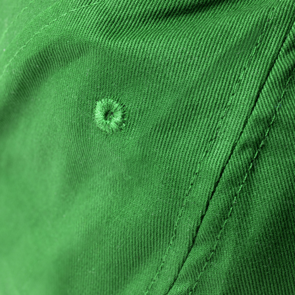 Gorra de 5 paneles 100% algodón reciclado. Cierre de velcro ajustable y orificios de ventilación.
