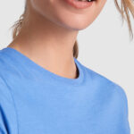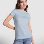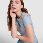 Camiseta de manga corta entallada en cintura. Cuello redondo en canalé 1×1. Cubrecosturas en cuello del mismo tejido.